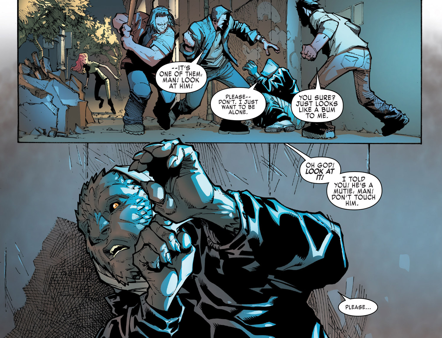 The true irony of the situation is that the mutant that was getting beaten up wasn’t even a mutant at all, he is an